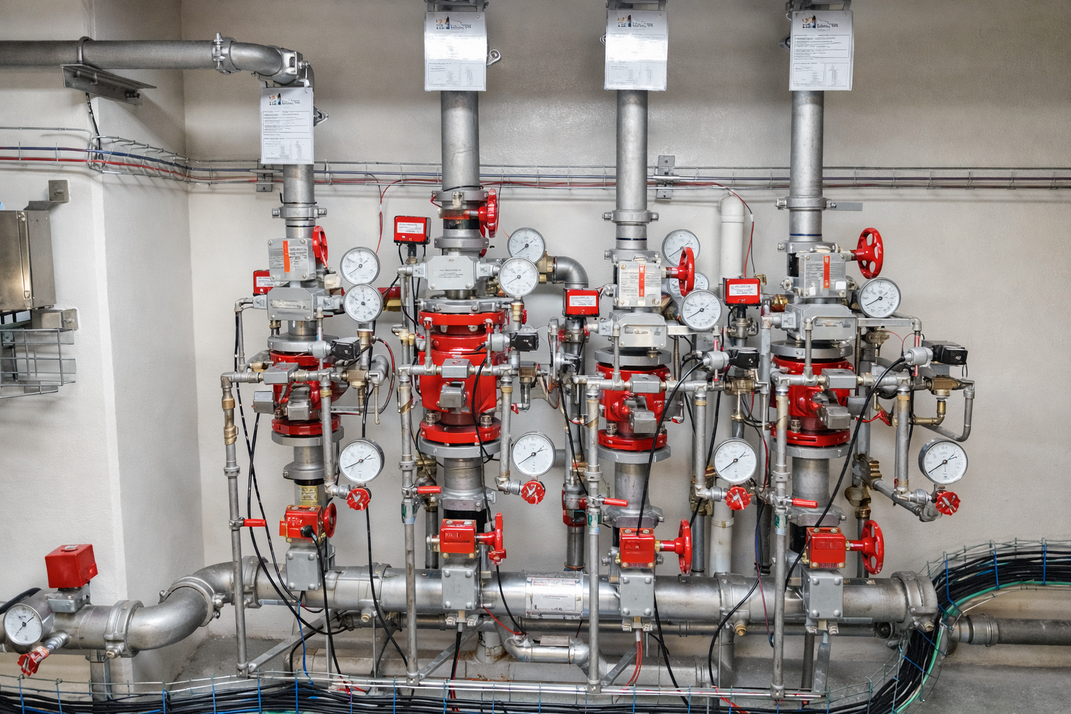 Installation of fire pumps, water tanks, and pressure systems for reliable water supply.
